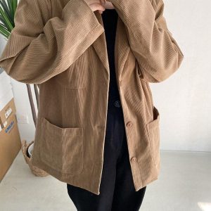 Dark Academia Corduroy Long Jacket