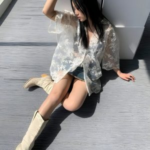 Sheer Floral Lace Shirt