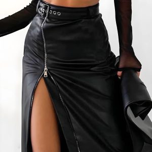 Baddie Zip Up Slit Midi Pencil Skirt