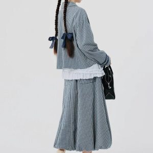 Soft Girl Plaid Bubble Midi Skirt