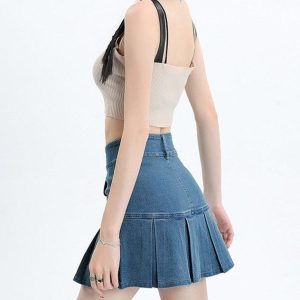 Y2K Pleated Jean Mini Skort