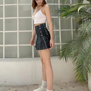 Y2K Striped Lace Up Mini Skirt