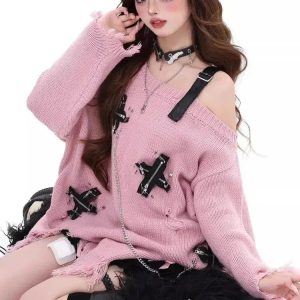 Grunge Kawaii Distressed Sweater