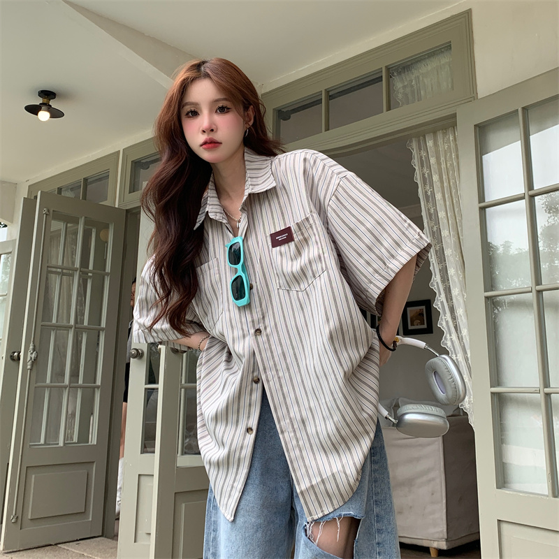 ummer Striped Short Sleeve Shirt Women Casual Blo, Loose Top Students High-quality product featuring prom dresses, spring outfits, business casual outfits and more. Modern design that fits the latest trends. Premium materials ensure durability and comfort. Order now for special offers! Product designed with attention to every detail. Suitable for all occasions and personal styles.