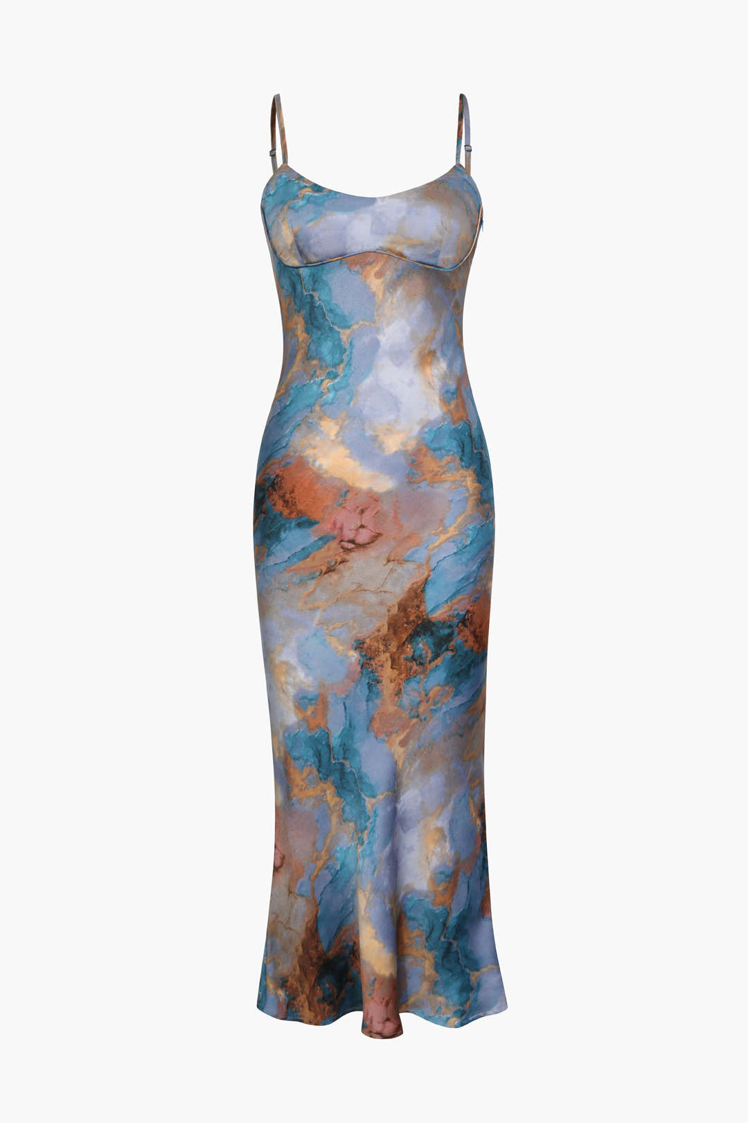 Stylish Abstract Print Fitted Midi Slip Dress: Y2k Outfit Ideas