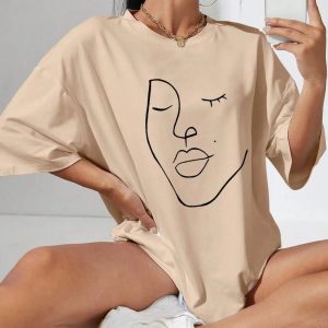 Unveil your flair for the abstract with this chic top, perfect for those who appreciate minimalist artistry. Its striking monochrome design, featuring a single-line face illustration, offers a bold, yet elegant statement. Ideal for versatile styling, it pairs effortlessly with denim for a casual day out or can be dressed up for an evening of sophistication.