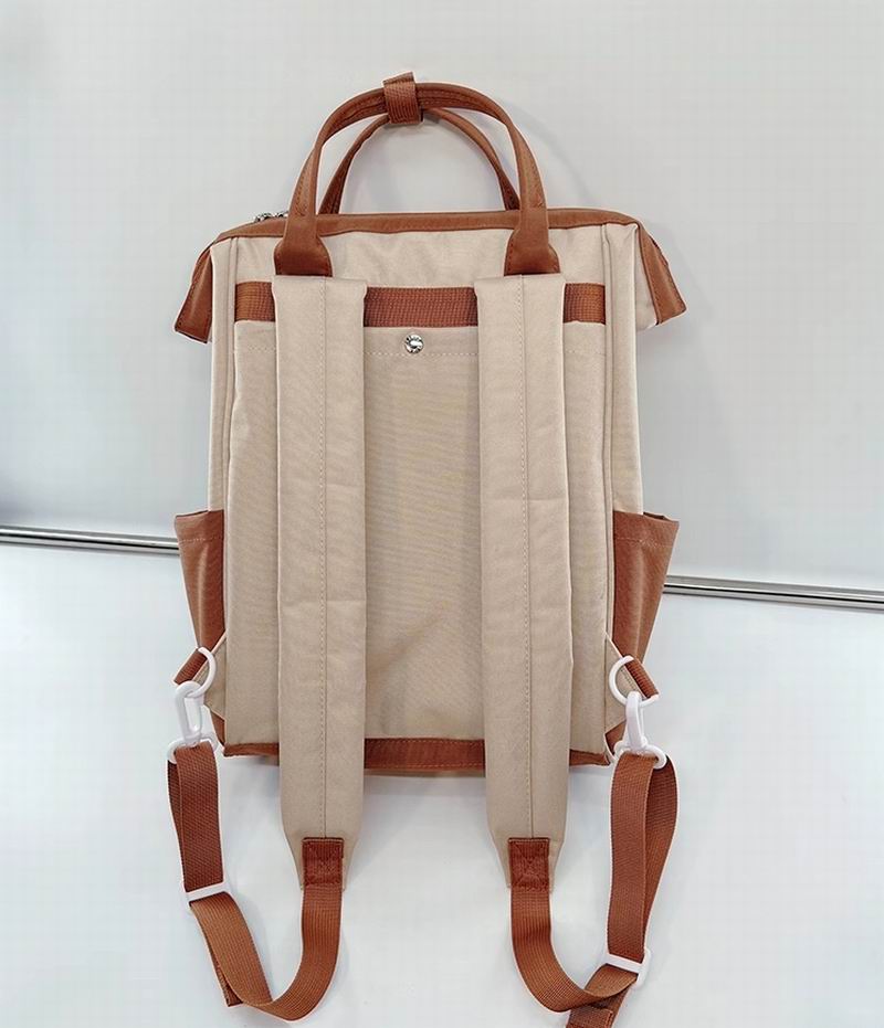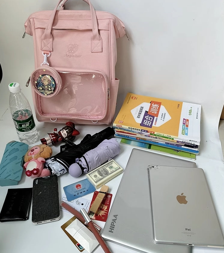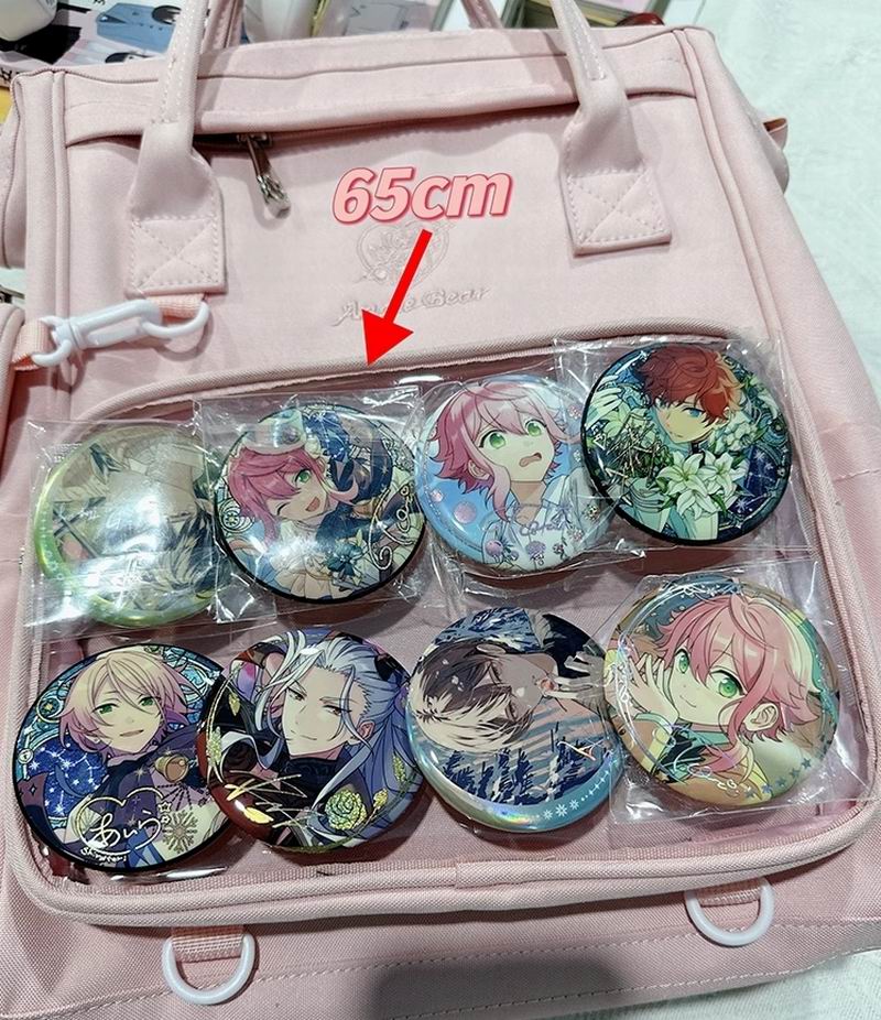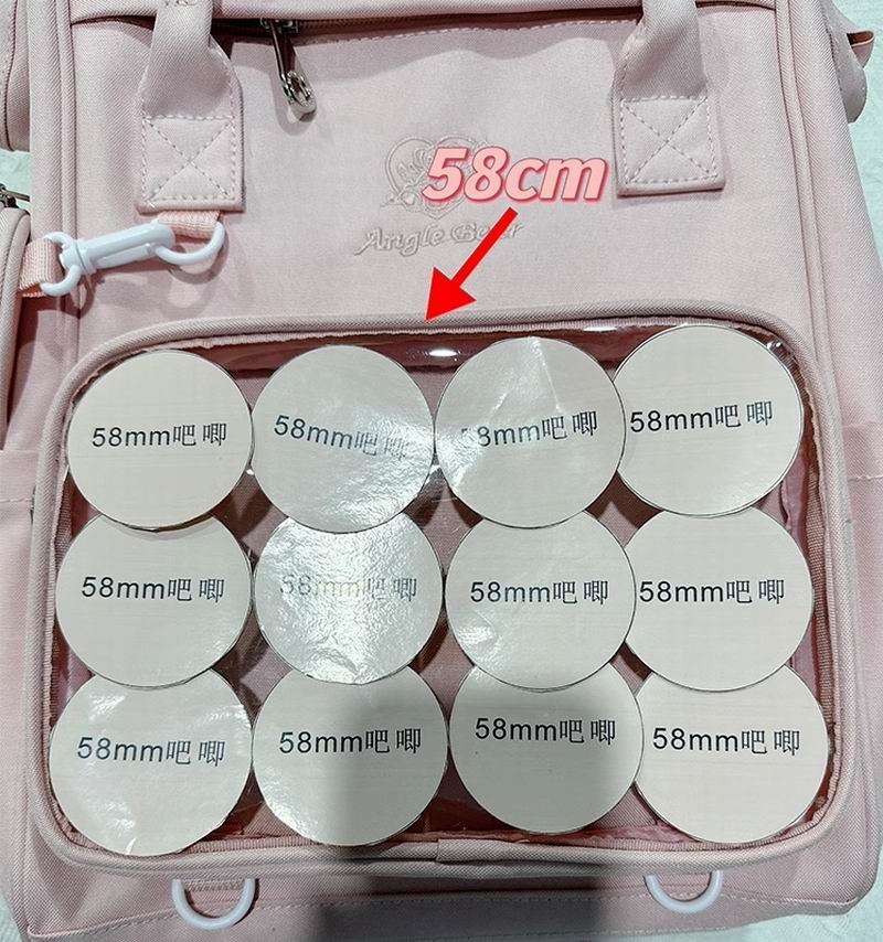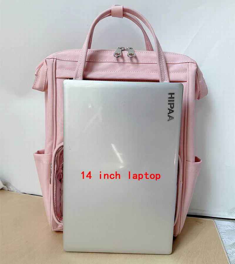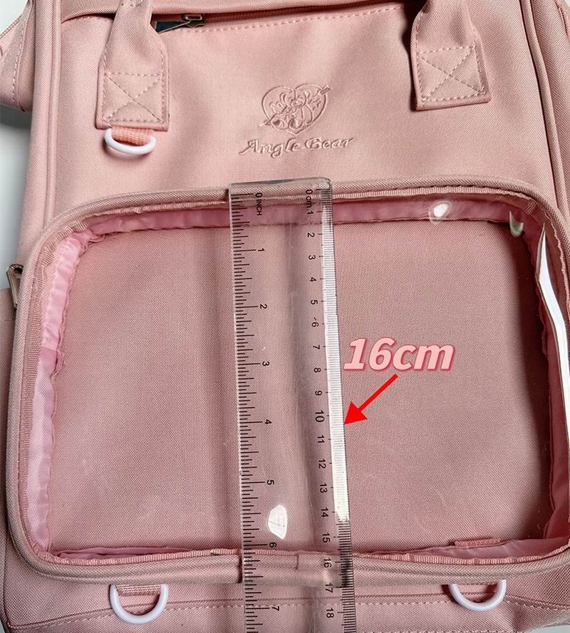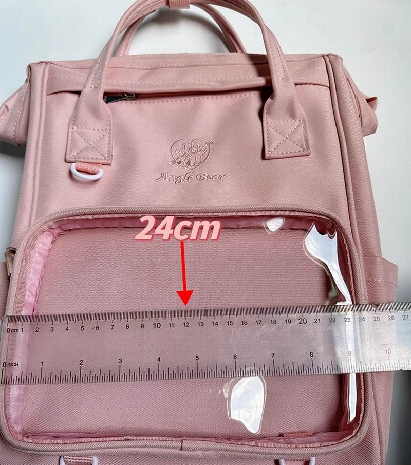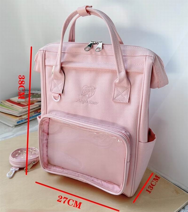 This is a spacious and waterproof mom Ita bag that can accommodate a 15.6-inch laptop. It comes with two insert boards, one transparent PVC and one in the same color scheme. Additionally, it includes a small circular hanging pouch for can badges. It’s perfect for use as a student backpack or for traveling.