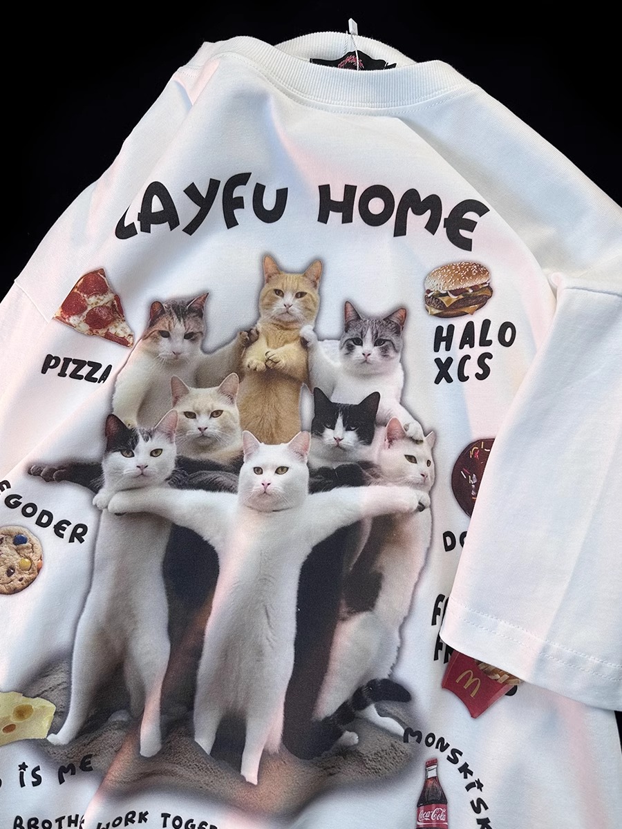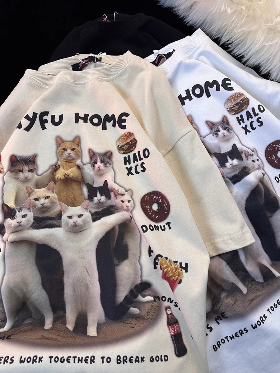 Retro Cat Print Pure Cotton Short Sleeve T- shirt Men, Women Plus Size Loose Couple Outfit Y2K High-quality product featuring prom dresses, spring outfits, business casual outfits and more. Modern design that fits the latest trends. Premium materials ensure durability and comfort. Order now for special offers! Product designed with attention to every detail. Suitable for all occasions and personal styles.