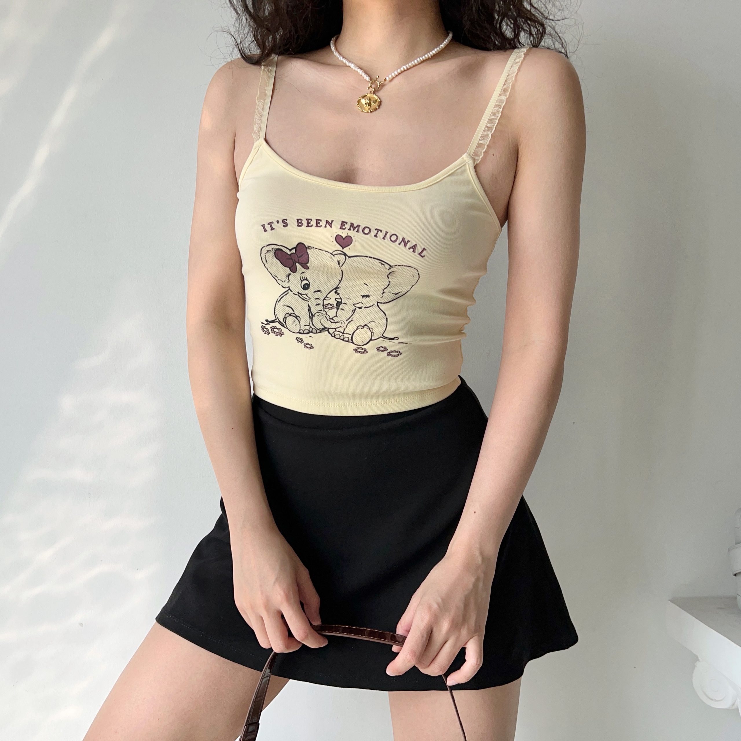 Retro Elephant Cartoon Print Cami Top Women Slim Fit Short Crop Top, Y2K High-quality product featuring prom dresses, spring outfits, business casual outfits and more. Modern design that fits the latest trends. Premium materials ensure durability and comfort. Order now for special offers! Product designed with attention to every detail. Suitable for all occasions and personal styles.