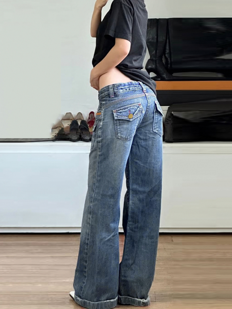 Retro Pocket Low Rise Straight Leg Jeans Women Vintage Pired – Outfit Ideas