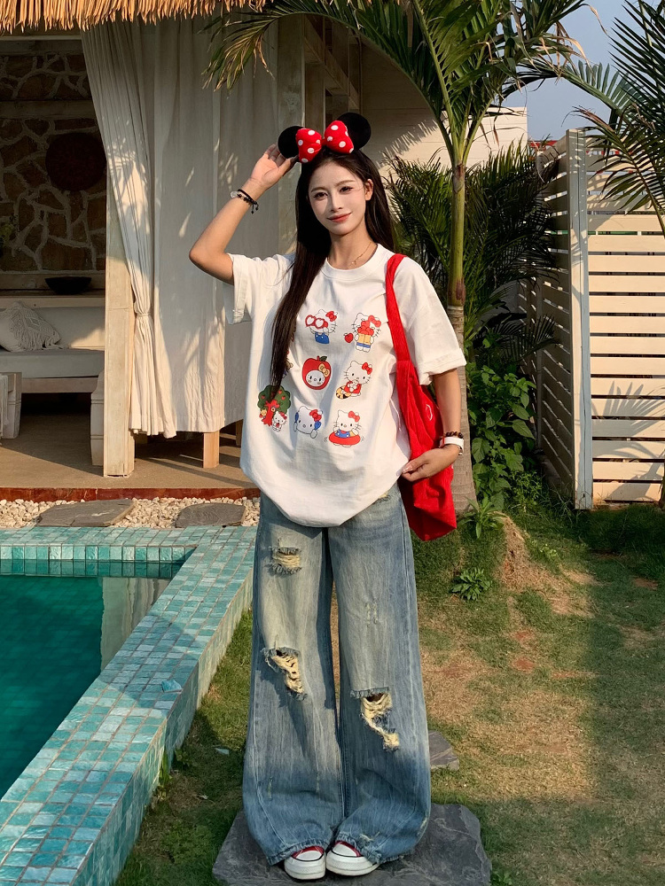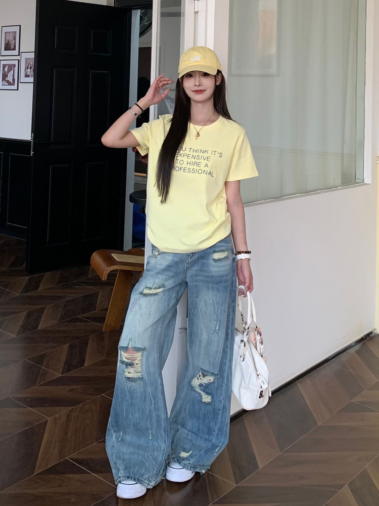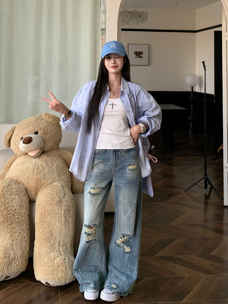 Elevate your summer wardrobe with our Ripped Straight Leg Jeans for Women, designed in a stylish mid-waist slim wide-leg cut that captures the essence of 90s fashion. Crafted for comfort and versatility, these jeans feature a trendy ripped detail that adds an edgy touch to any outfit, making them perfect for casual outings or stylish gatherings. Don’t miss out on this must-have piece that effortlessly combines retro charm with modern appeal—add to your cart today and redefine your summer style!