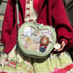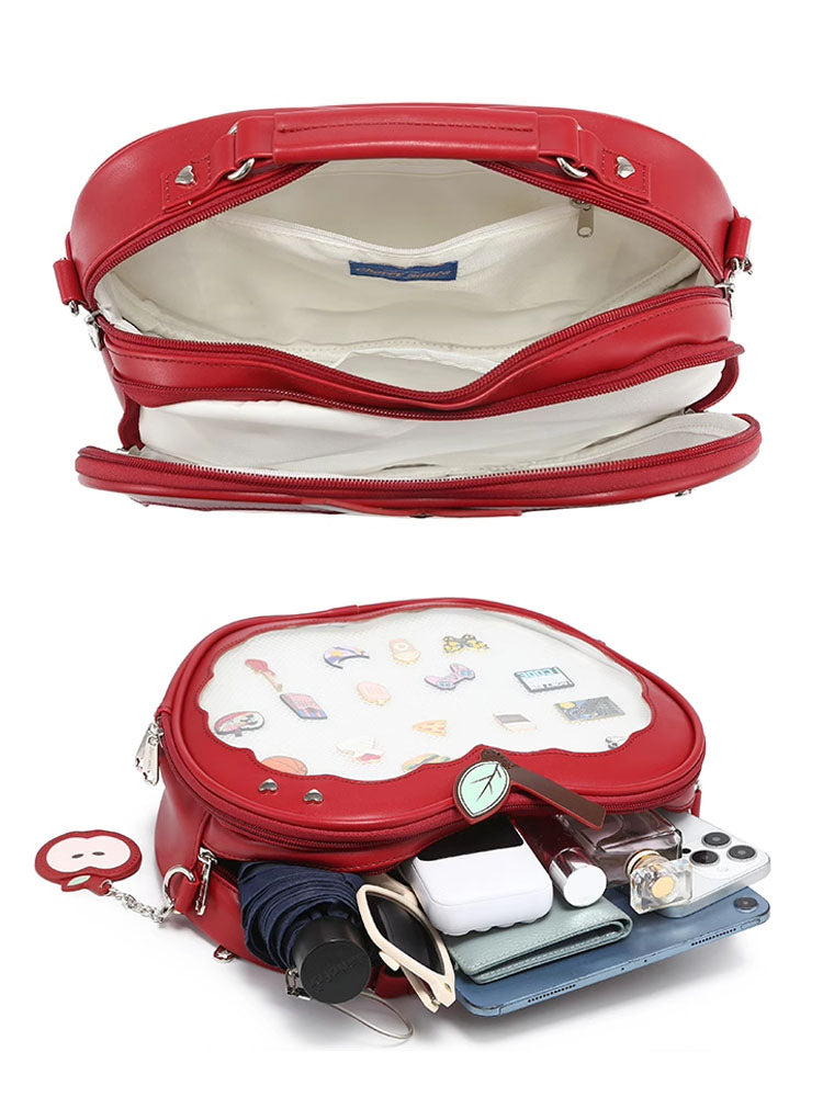 Apple-Shaped Ita Bag – Versatile Crossbody and Backpack for Pins and Badges