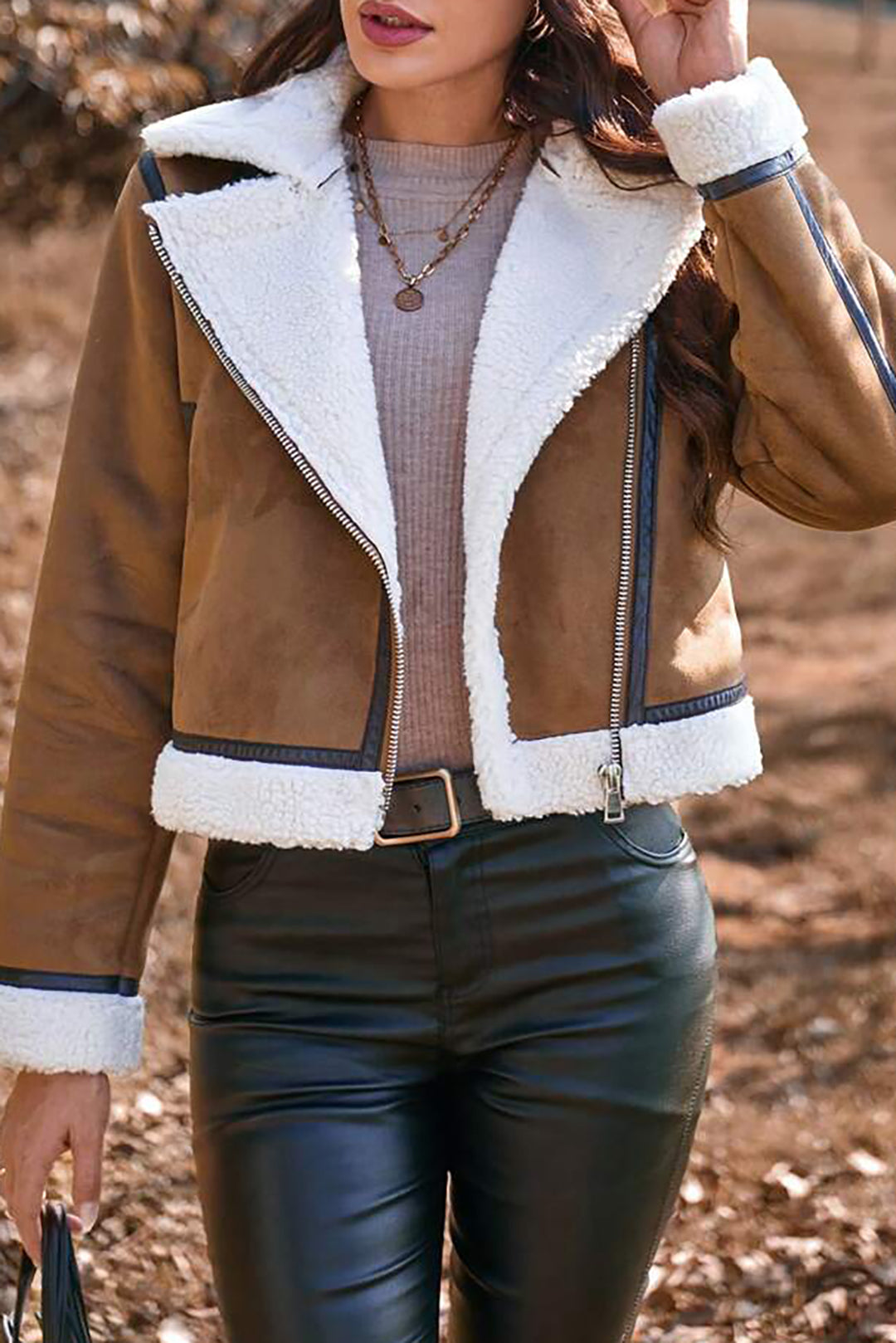 Zipper Faux Shearling Coat Belt, Notched Lapel Y2K High-quality product featuring prom dresses, spring outfits, business casual outfits and more. Modern design that fits the latest trends. Premium materials ensure durability and comfort. Order now for special offers! Product designed with attention to every detail. Suitable for all occasions and personal styles.