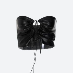 Featuring a daring lace-up front with eye-catching cutouts, this top accentuates the silhouette while adding an edgy flair. The sleek faux leather material provides a contemporary, chic look, perfect for a night out or a trendy event. Pair it with high-waisted pants or a skirt for an effortlessly stylish ensemble that exudes confidence and attitude.