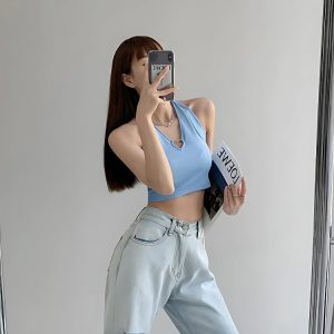 Unveil a touch of edgy allure in your wardrobe with this halter top, a seamless blend of urban chic and romantic undertones. The heart ring accent draws the eye, making it a versatile piece that transitions effortlessly from daywear to an evening out. Pair with high-waisted trousers or a flowy skirt for an instant style lift.
