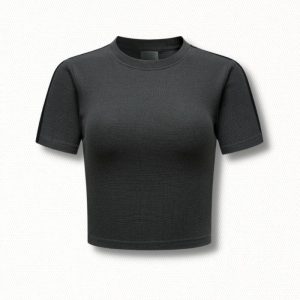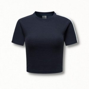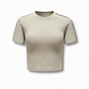 Simple yet striking, this cropped tee offers a flexible fit, thanks to its cotton-spandex blend. The slim-fit silhouette and cropped design add a trendy twist to this basic piece, making it a must-have for fashion-forward wardrobes.