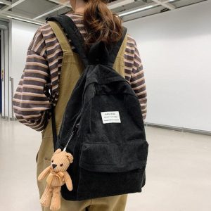 Stay organized in style with our Teddy Bear Corduroy School Backpack. This bag features zip fastening, internal pockets for your laptop, tablet, and phone, and a teddy bear accessory. Made from polyester, this backpack pairs well with casual or school outfits.
