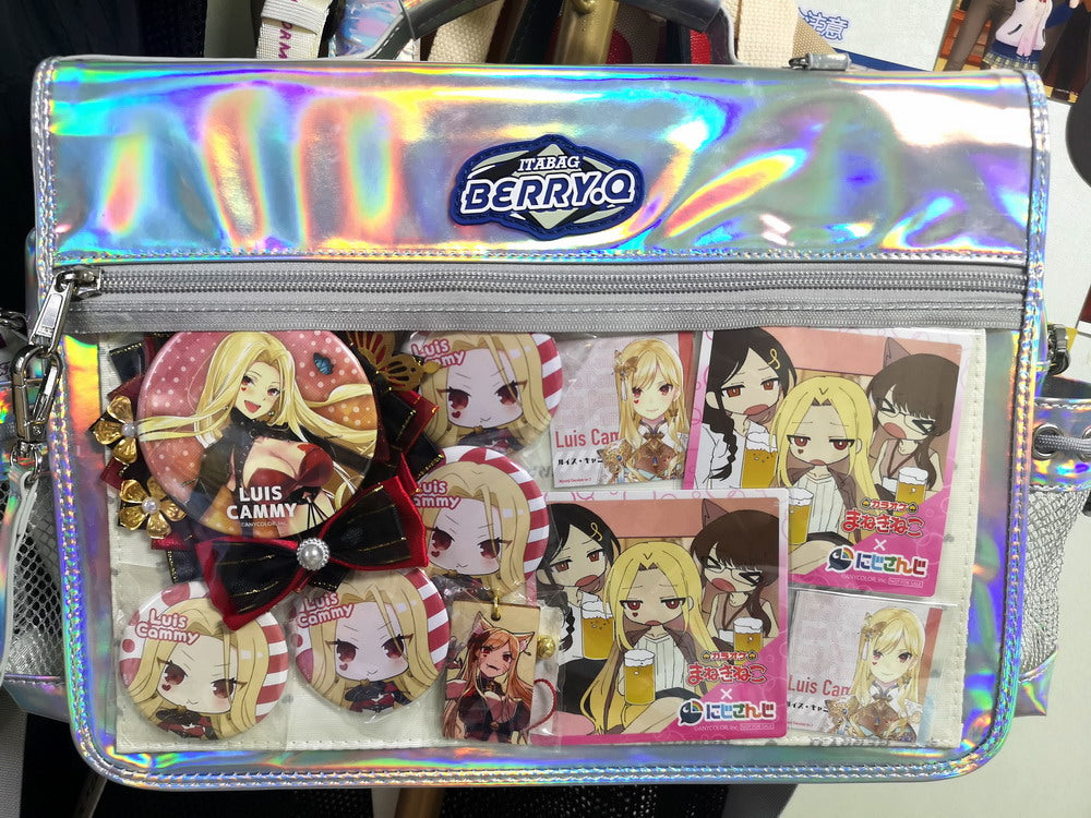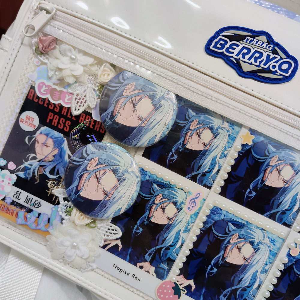 Ita bag with a shoulder strap; the front of the Ita bag is a display for pins, in which you can put photos, pictures, anime posters and anything you can decorate the bag with.