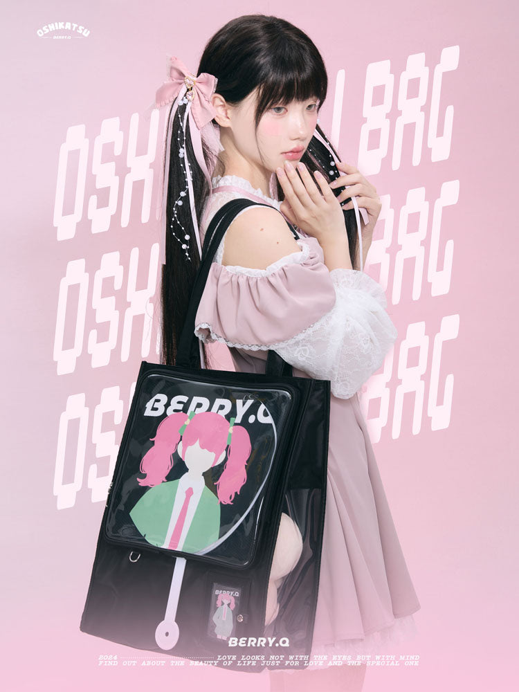 Made from satin with a PVC transparent window, this bag features a magnetic closure and can be used as a shoulder bag or handbag. It includes a separate side display window for light sticks or plush dolls. The transparent layer accommodates items up to 30cm in diameter. Available in 7 colors.