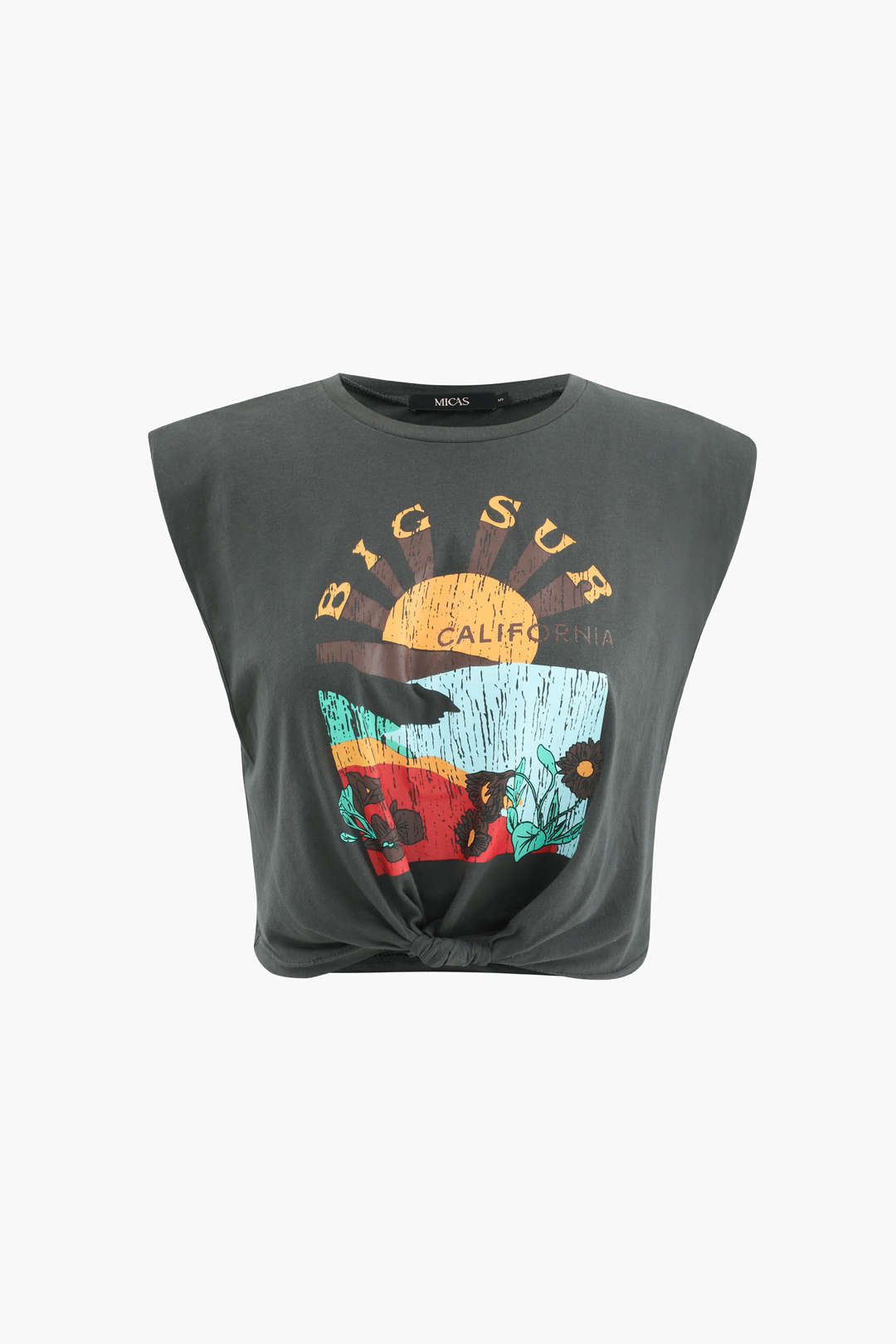 Big Sur Graphic Padded Shoulder Knot Hem Tee Y2K Cute Top Outfits High-quality product featuring prom dresses, spring outfits, business casual outfits and more. Modern design that fits the latest trends. Premium materials ensure durability and comfort. Order now for special offers! Product designed with attention to every detail. Suitable for all occasions and personal styles.