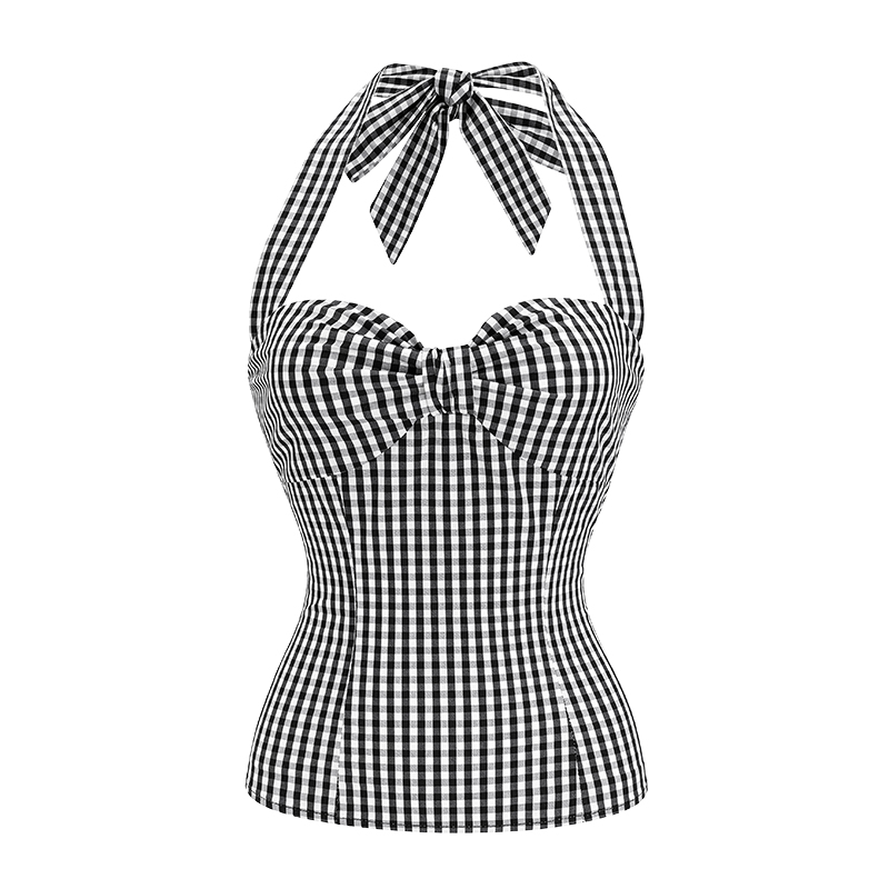 Black, White Checkered Slim Fit Halter Neck Tank Top Women Backless Cropped Top in, Y2K High-quality product featuring prom dresses, spring outfits, business casual outfits and more. Modern design that fits the latest trends. Premium materials ensure durability and comfort. Order now for special offers! Product designed with attention to every detail. Suitable for all occasions and personal styles.