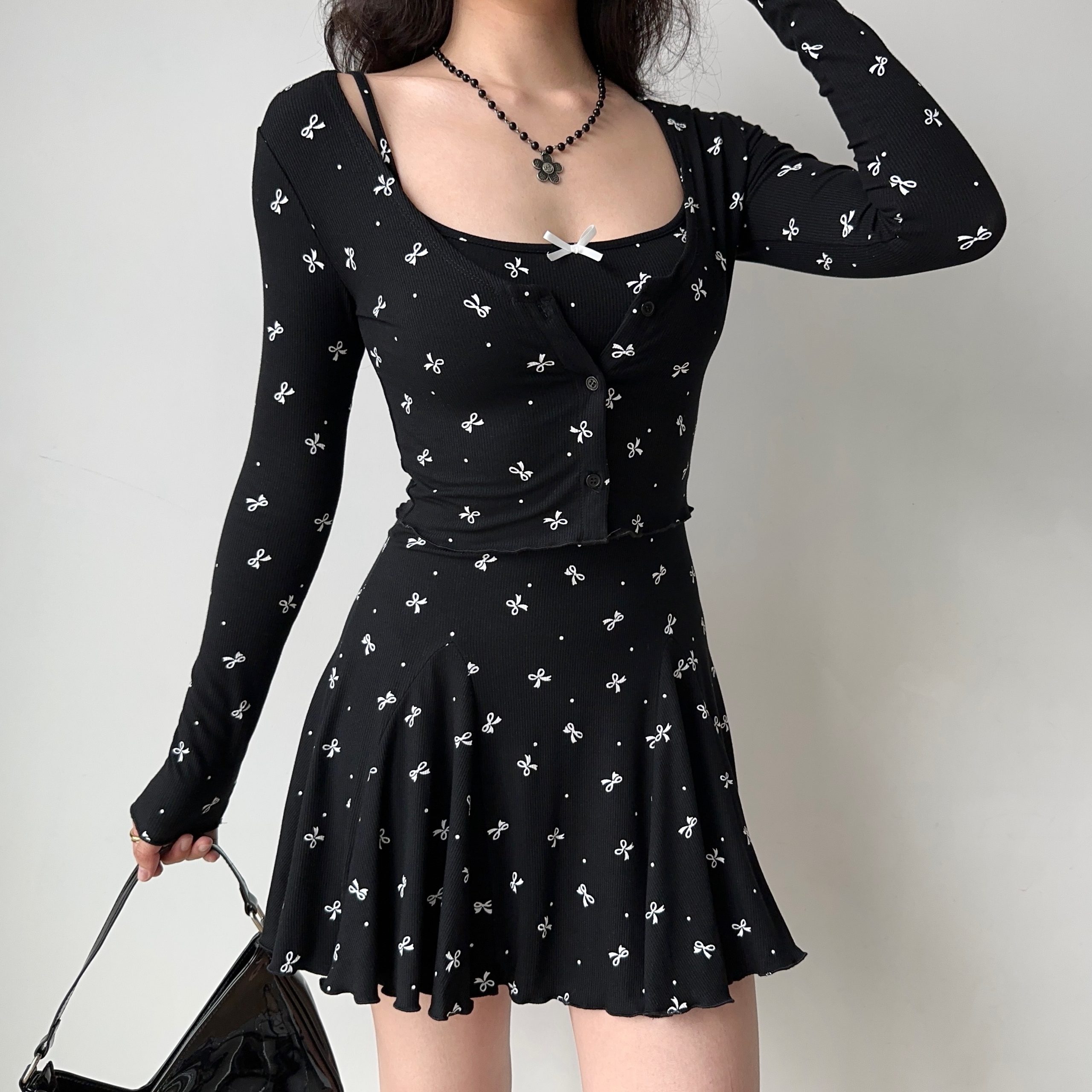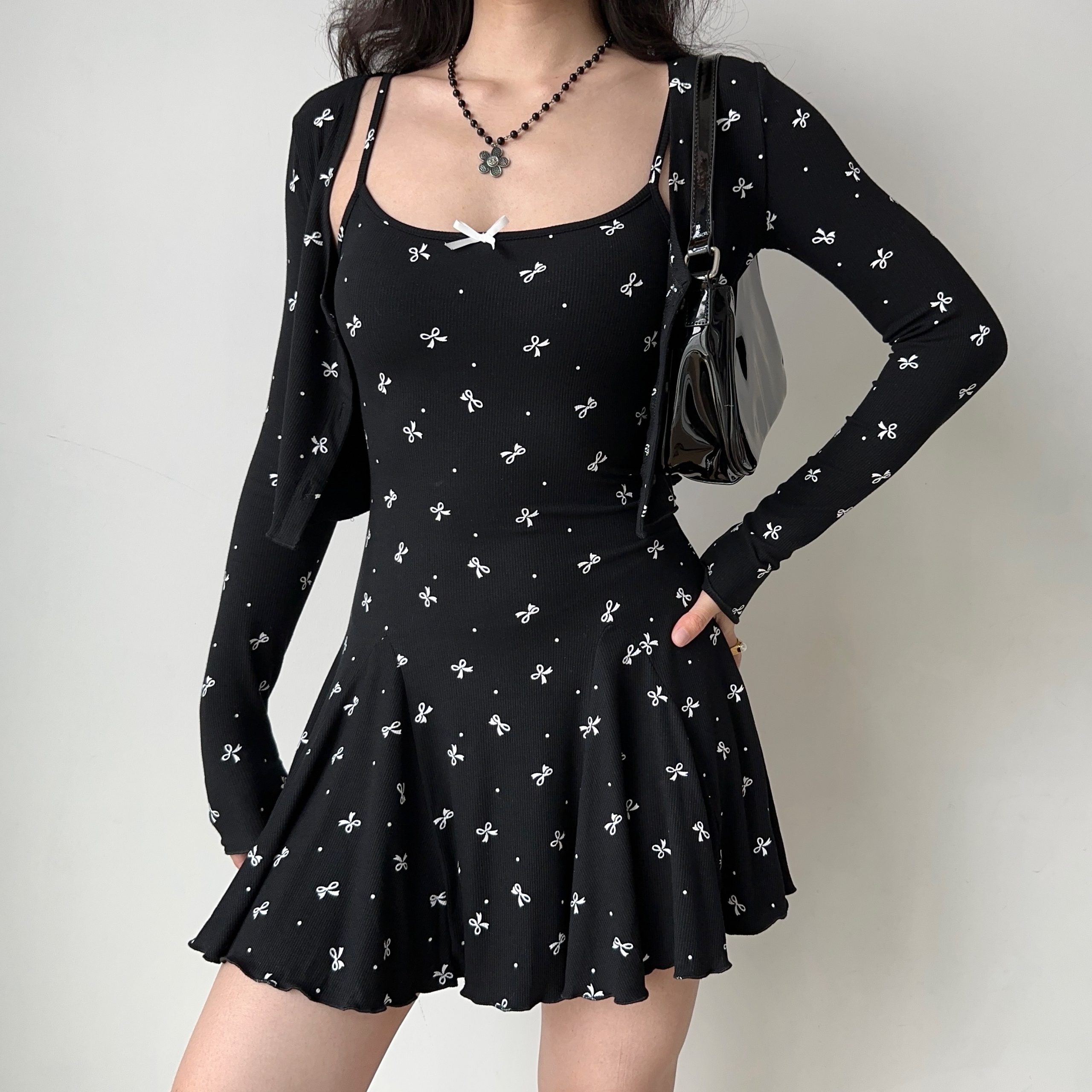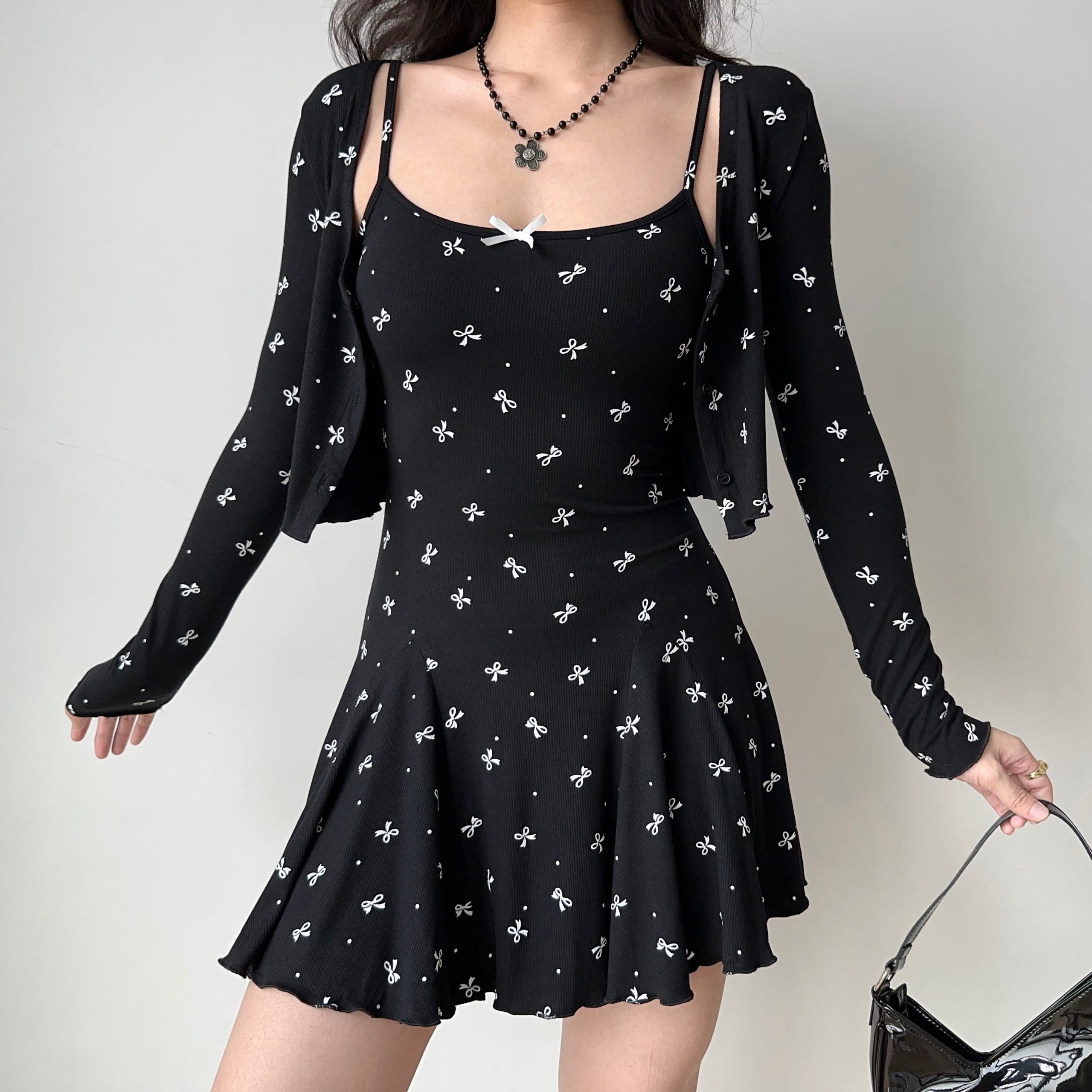 Black Bow Tie Camisole Dress Cardigan Two Set Women A Line Short Skirt, Casual High-quality product featuring prom dresses, spring outfits, business casual outfits and more. Modern design that fits the latest trends. Premium materials ensure durability and comfort. Order now for special offers! Product designed with attention to every detail. Suitable for all occasions and personal styles.