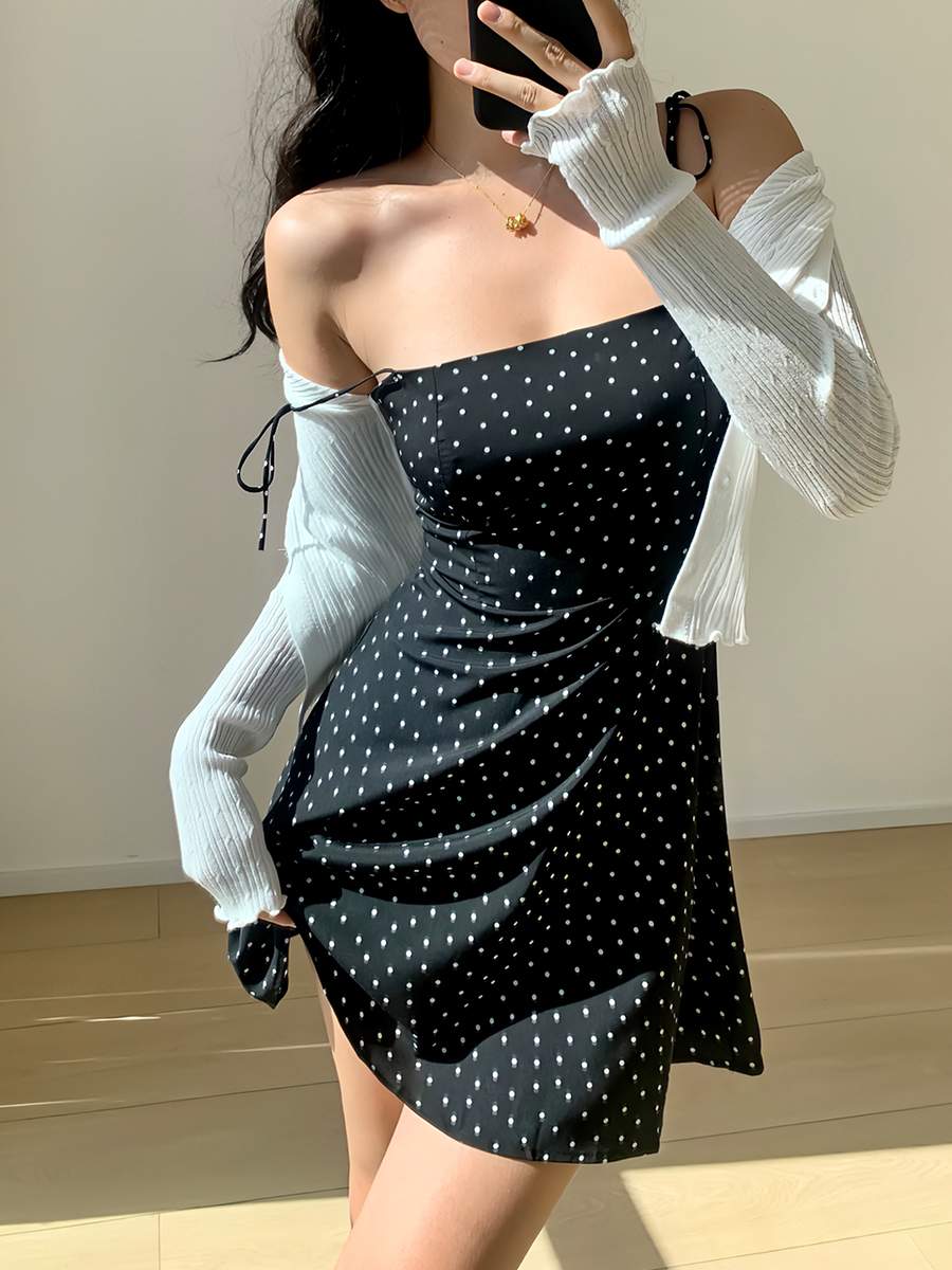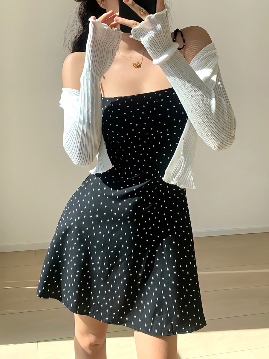 Black Polka Dot Thin Strap A-line Mini Dress: Stylish Outfit Ideas
