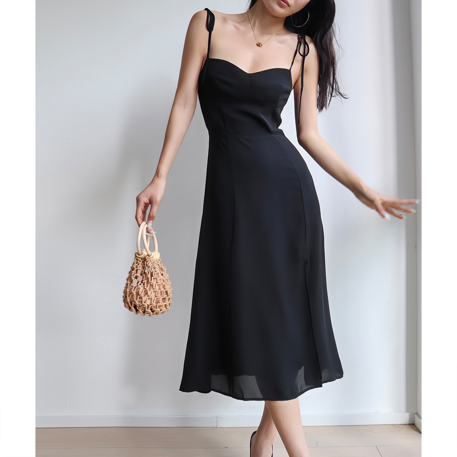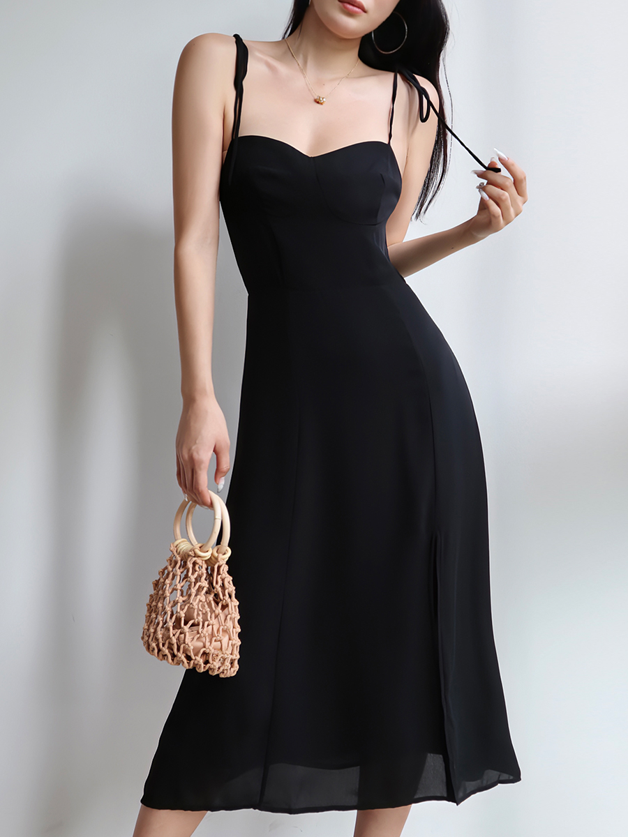 Black Vintage Tie Up Holiday Dress Women Side Split V- Neck Strap Long Dress in High-quality product featuring prom dresses, spring outfits, business casual outfits and more. Modern design that fits the latest trends. Premium materials ensure durability and comfort. Order now for special offers! Product designed with attention to every detail. Suitable for all occasions and personal styles.