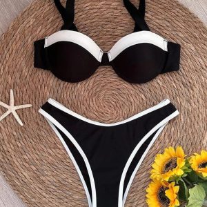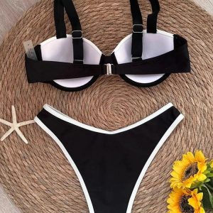 Turn heads at the beach or pool with the stylish and sophisticated contrast bikini set. This two-piece swimsuit combines a classic color palette with a modern design, making it a must-have for any fashion-forward beachgoer.