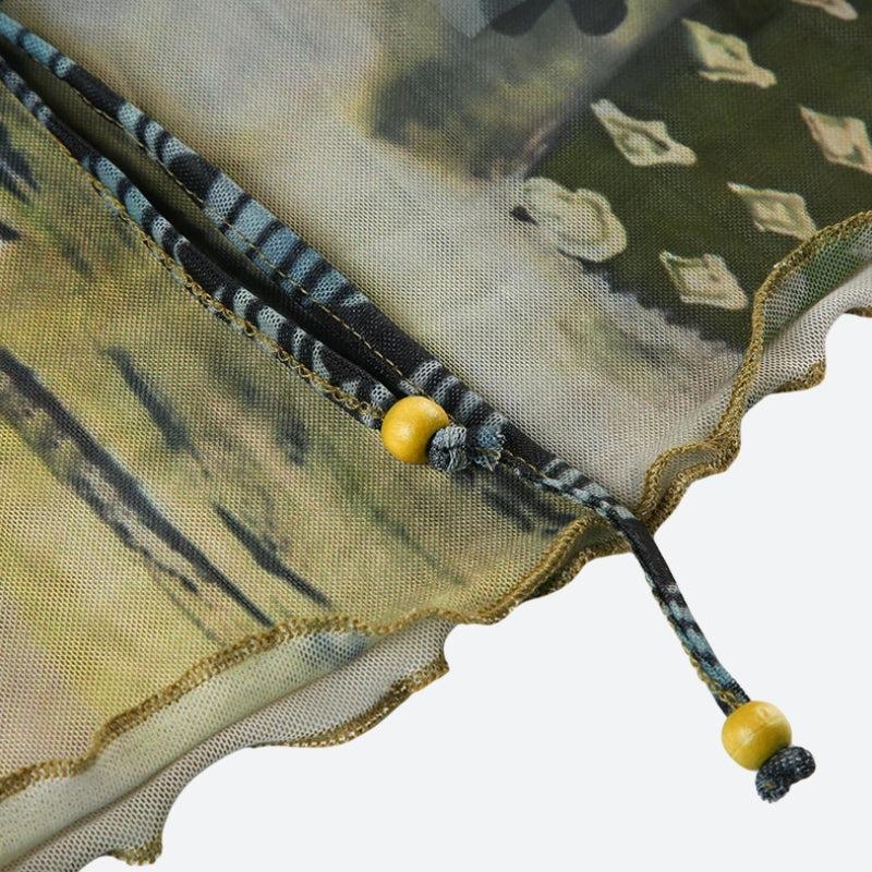 Add a free-spirited vibe to your outfit with this bohemian tie-up top. The ring details and adjustable front let you customize the fit, while the patterned design keeps it eye-catching for festivals or weekends.