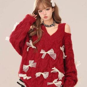 Add a touch of charm to your wardrobe with this fluffy sweater, featuring delicate bow accents and playful cutouts. Perfect for cozy winter days or a standout look at casual gatherings.
