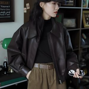 Crafted with faux leather, this jacket offers a durable and stylish layer perfect for cooler weather. The rich brown hue gives it a classic appeal, while the slightly oversized fit adds a modern twist, making it versatile for various looks. Whether you’re dressing up for a night out or adding a casual edge to your daywear, this jacket is a must-have for any wardrobe.