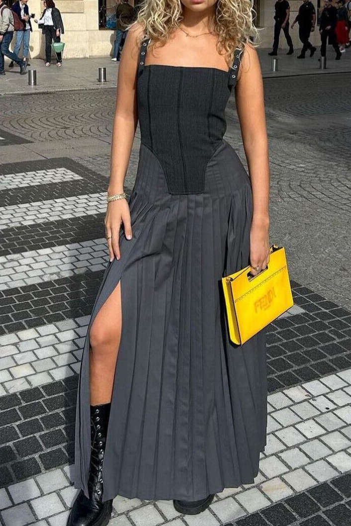 Buckle Strap Pleated Bustier Maxi DressY2K Coquette, Grunge High-quality product featuring prom dresses, spring outfits, business casual outfits and more. Modern design that fits the latest trends. Premium materials ensure durability and comfort. Order now for special offers! Product designed with attention to every detail. Suitable for all occasions and personal styles.