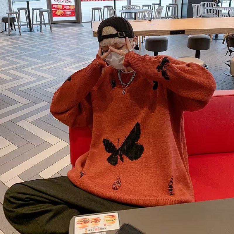 Adorning a unique butterfly motif, this knitted sweater exudes an enchanting blend of soft comfort and bold allure. Its thoughtfully designed distressed details reflect an edgy vibe, complemented by its cotton-polyester fabric. Unisex in design, it’s an embodiment of versatile style and comfort.