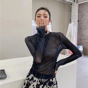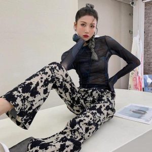 Step into a whimsical world with this transparent mesh top, adorned with intricate butterfly prints. Its long sleeves and delicate design make it perfect for a cute, streetwear, or party look, ideal for those who love to combine casual and cool styles with a festive touch
