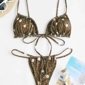 A blend of sophistication and modern design, this bikini set features a button-up front with contrasting trim, providing a sleek and polished look. The high-waisted bottoms and structured top offer both style and comfort, making it an ideal choice for a chic beachside appearance.