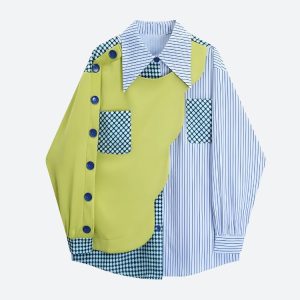 This unique shirt stands out with its swallow-tailed collar and striped pattern detail, offering a distinctive look. The buttoned sleeves add to its charm, making it a great choice for anyone who appreciates a unique yet cozy style in their wardrobe.