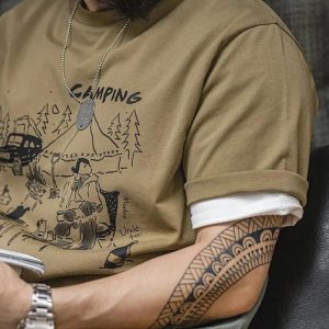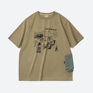 Embrace outdoor adventures with this tee. Featuring a detailed camping graphic and practical pocket, this t-shirt combines style and functionality. Made from durable, breathable cotton, it’s perfect for casual outings and outdoor activities. Pair it with jeans or shorts for a laid-back, adventurous look.