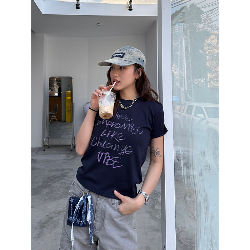 Casual Letter Print Short Sleeve T- shirt Women Neck Summer Top in, Korean High-quality product featuring prom dresses, spring outfits, business casual outfits and more. Modern design that fits the latest trends. Premium materials ensure durability and comfort. Order now for special offers! Product designed with attention to every detail. Suitable for all occasions and personal styles.