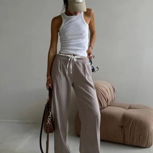 The Casual Tailored Pants strike the perfect balance between polished and laid-back. With their drawstring waist detail and flowy, wide-leg silhouette, they give you major ‘off-duty model’ vibes while keeping it cozy.