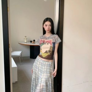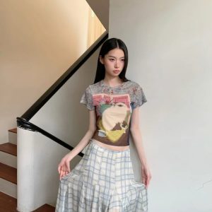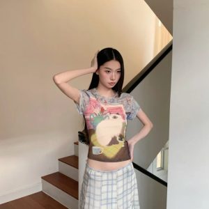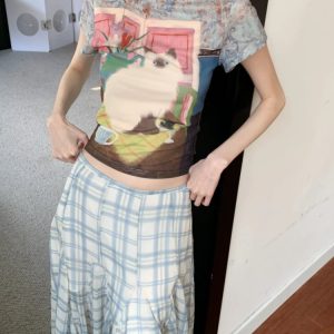 The Cat Graphic Sheer Top blends artful detail with a light, airy feel. Featuring a printed cat illustration set against a vintage-style background, this mesh top adds charm and personality to any outfit. Its fitted silhouette and semi-transparent finish make it perfect for layering or styling solo for a playful, aesthetic look.