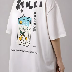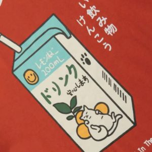This playful Cat Lemon Juice Tee showcases a quirky graphic of a cat enjoying a lemon juice box, accompanied by fun Japanese text. The relaxed fit and soft fabric ensure all-day comfort, while the bright orange shade adds a cheerful pop to your wardrobe. Ideal for casual days, this tee brings a lighthearted touch to your style with its unique, whimsical design.