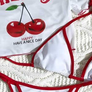 Sweet but spicy. This cherry-printed mesh crop top and matching micro bikini set brings serious Y2K energy. Perfect for pool parties, selfies, and sunshine.