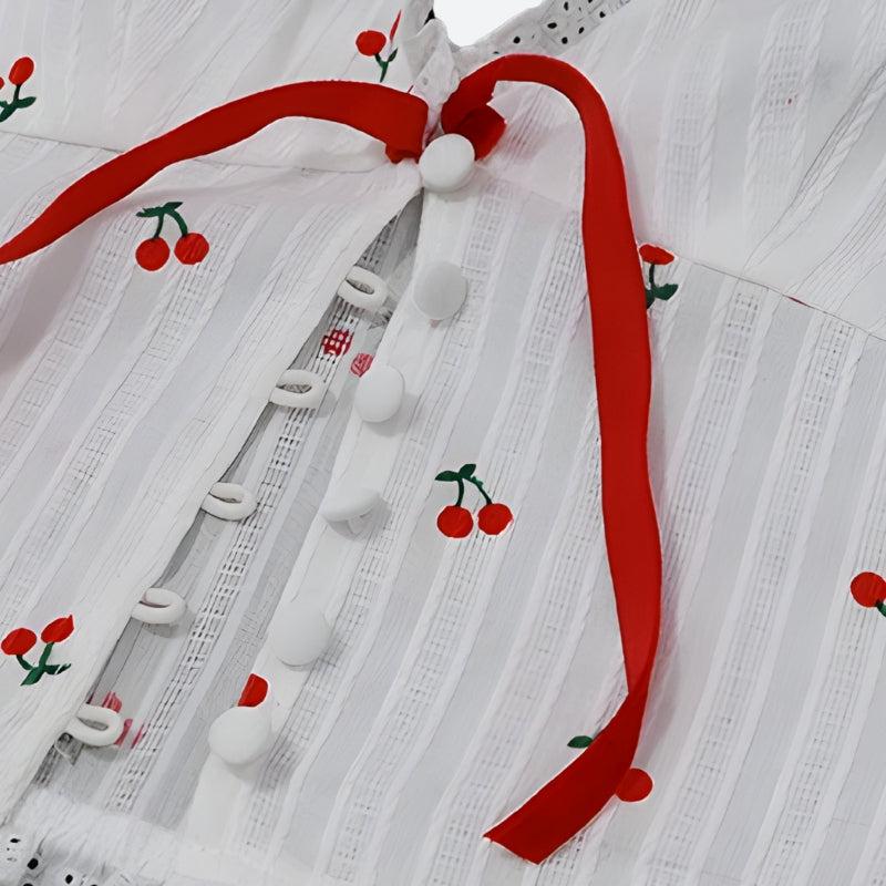 Get a sweet style with this soft girl cherry halter neck top. The playful cherry print, tie-front design, and lace trim create a youthful vibe for everyday wear or weekend dates.