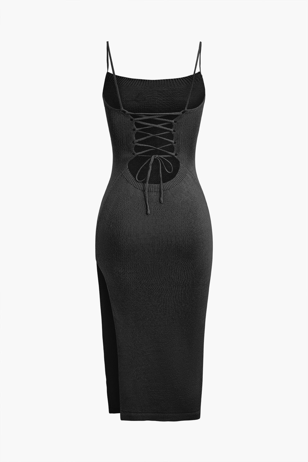 Braided Tie Slip Slit Knit Midi Dress Y2K, Coquette High-quality product featuring prom dresses, spring outfits, business casual outfits and more. Modern design that fits the latest trends. Premium materials ensure durability and comfort. Order now for special offers! Product designed with attention to every detail. Suitable for all occasions and personal styles.