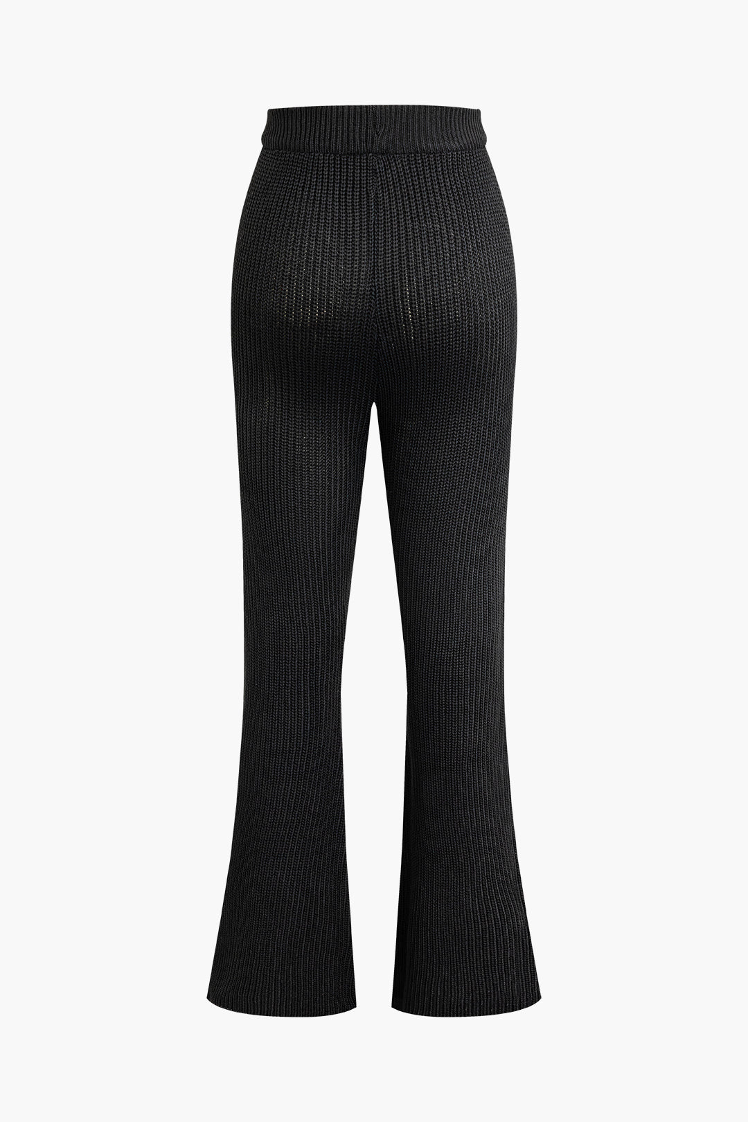 Half Zipper Collar Long Sleeve Top High Waislit Flare Pants – Outfit Ideas