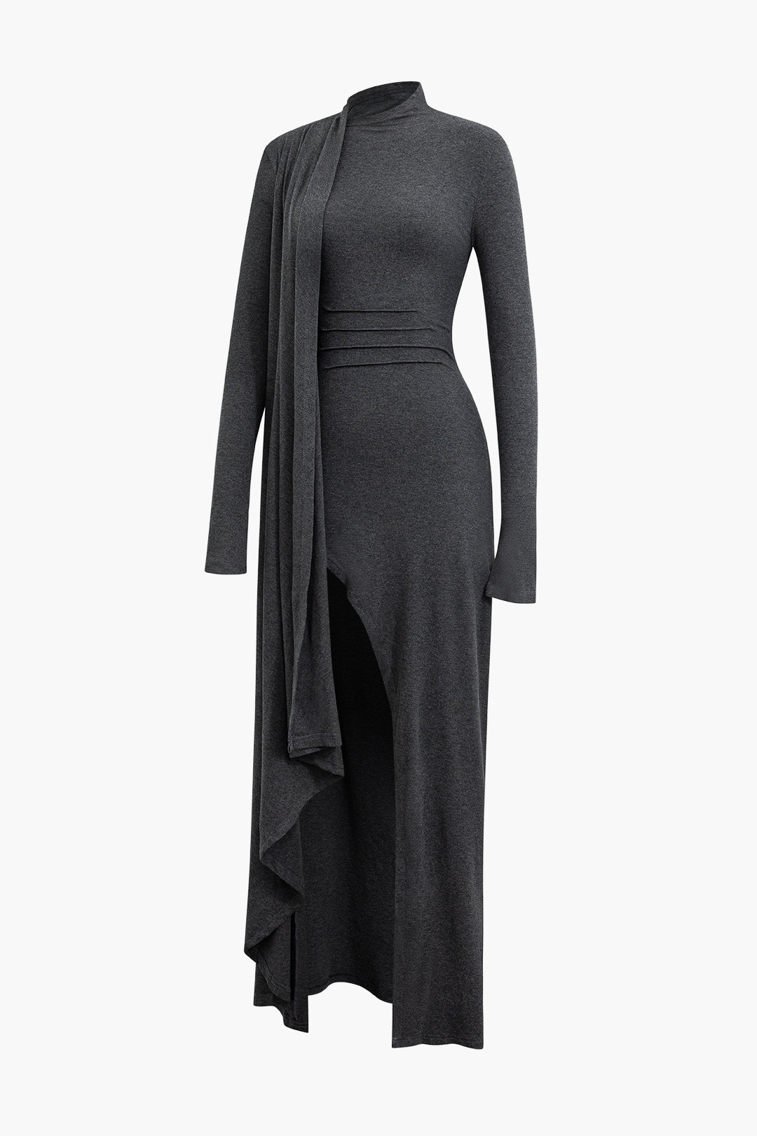 Mock Neck Wrap Ruched Long Sleeve Slit Maxi Dress Y2K, Coquette High-quality product featuring prom dresses, spring outfits, business casual outfits and more. Modern design that fits the latest trends. Premium materials ensure durability and comfort. Order now for special offers! Product designed with attention to every detail. Suitable for all occasions and personal styles.