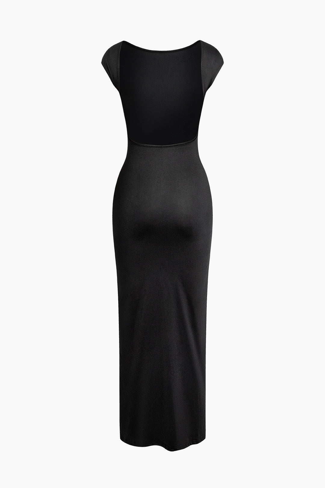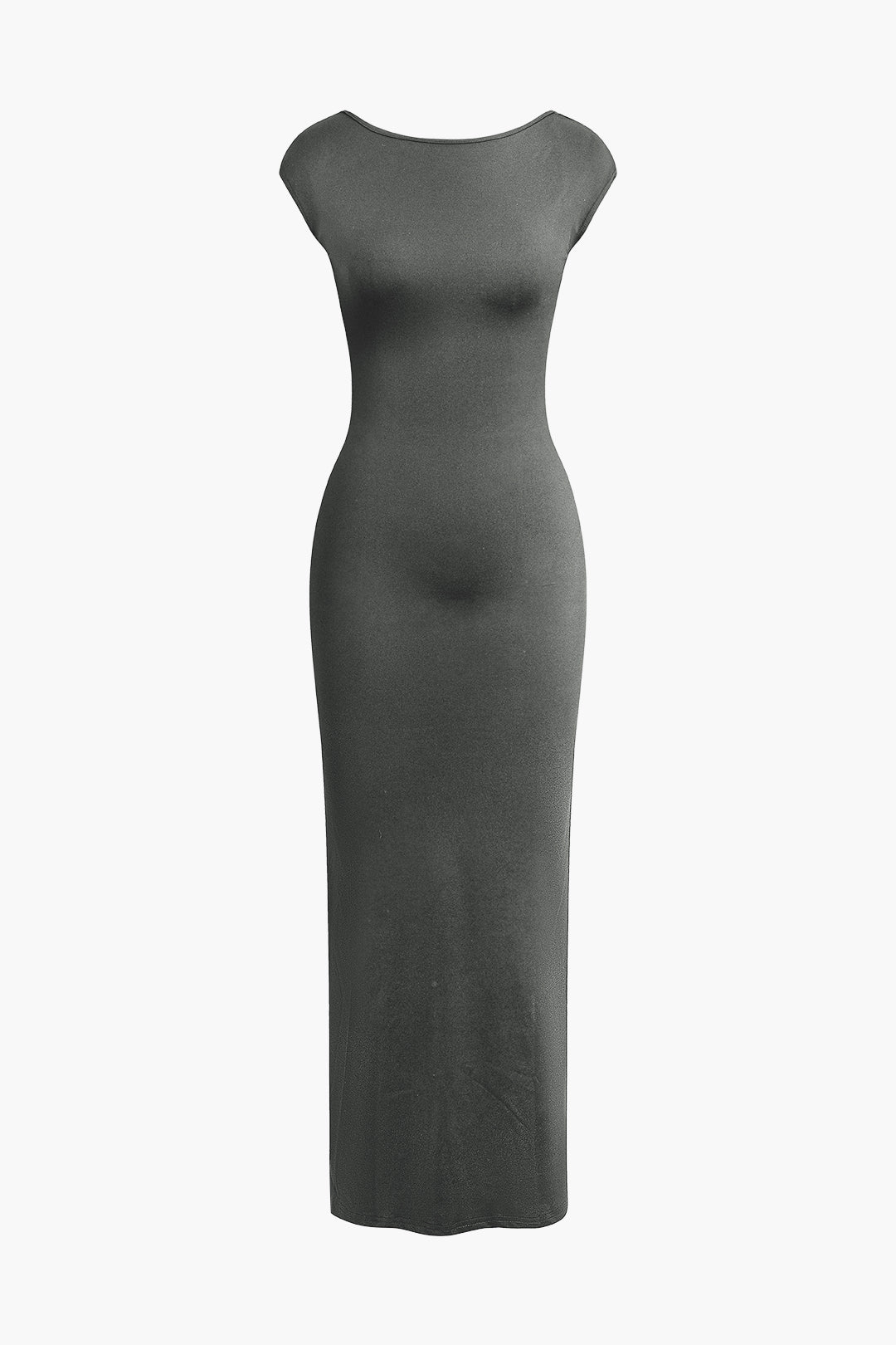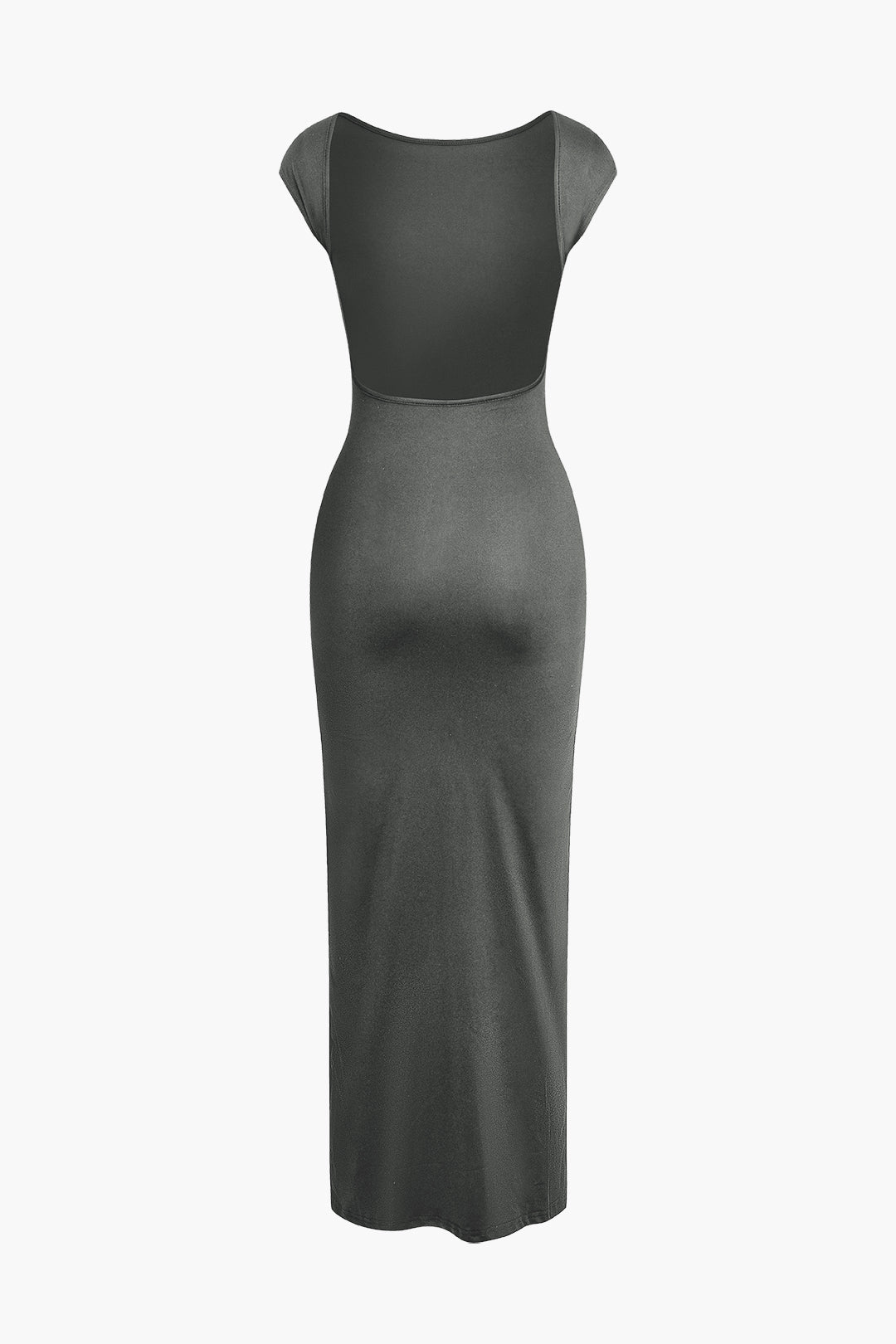 Solid Backless Short Sleeve Maxi Dress Y2K High-quality product featuring prom dresses, spring outfits, business casual outfits and more. Modern design that fits the latest trends. Premium materials ensure durability and comfort. Order now for special offers! Product designed with attention to every detail. Suitable for all occasions and personal styles.