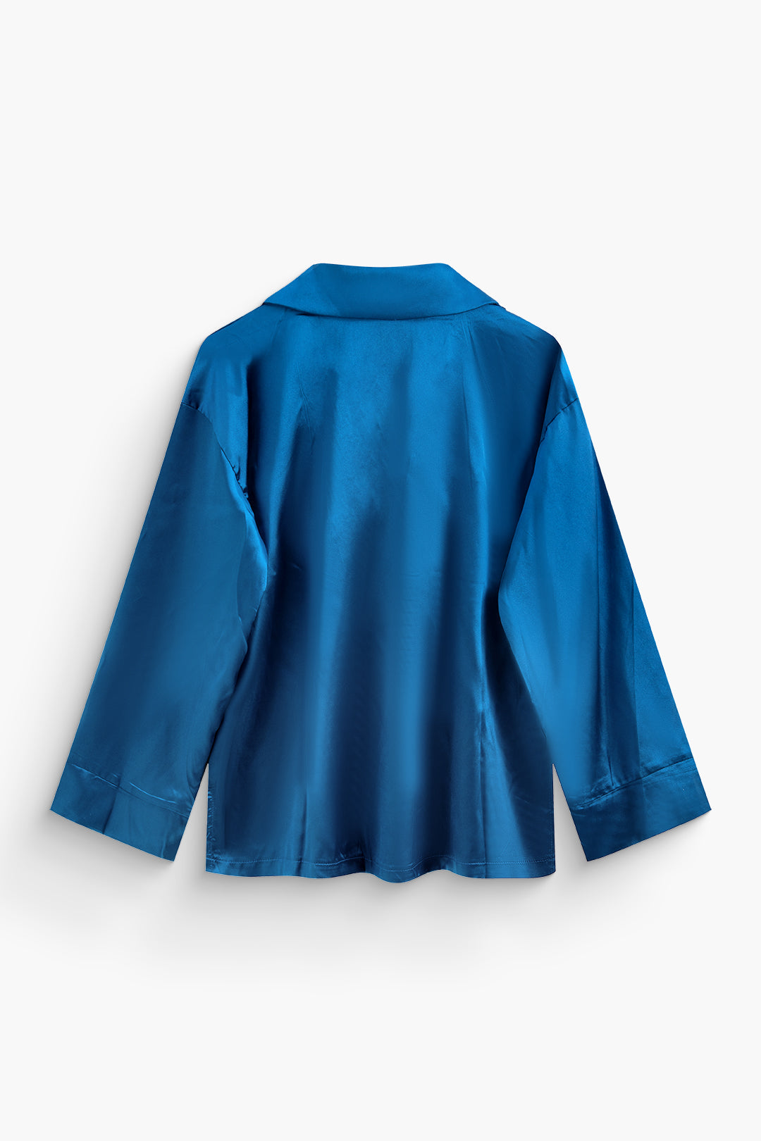 Solid Satin V- Neck Button up Shirt Straight Leg Pants Set Y – Outfit Ideas