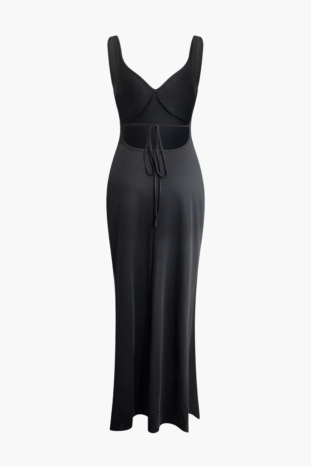 Stunning Solid V-neck Backless Tie Maxi Dress: Outfit Ideas for Y2k Style